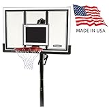 Hone your jumpshot in your spare moments or perform a backyard dunking drill with the Lifetime 71525 in-ground basketball goal. Designed for permanent installations in cemented driveways, the 71525 includes such features as a Shatter Guard backboard, a spring-back Slam-It Pro Rim, and a Power Lift pole mechanism for speedy height changes.The goal's sturdiness stems from the cement-ready base, which is more rigid and takes up less space than portable basketball goals (it does require roughly 72 hours of cement drying time, however). The clear 54-inch Shatter Guard backboard, meanwhile, is made of Makrolon polycarbonate, which is virtually unbreakable and 30 times stronger than acrylic. As a result, broken backboards are a thing of the past, even from errant rocks and other non-basketball threats. In addition, the board offers a UV coating that prevents yellowing over time, a high-impact polyethylene frame, and screen-printed inks for fade-resistant color.